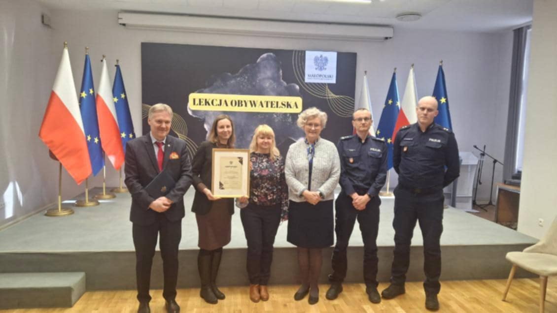 20 stycznia uczniowie klas 2b i 2c mieli okazję uczestniczyć w ,,Lekcji obywatelskiej" prowadzonej przez Panią Elżbietę Achinger - I Wicewojewodę Małopolski, Pana Artura Paska – I Małopolskiego Wicekuratora Oświaty oraz Policjantów z Komendy Głównej Policji.